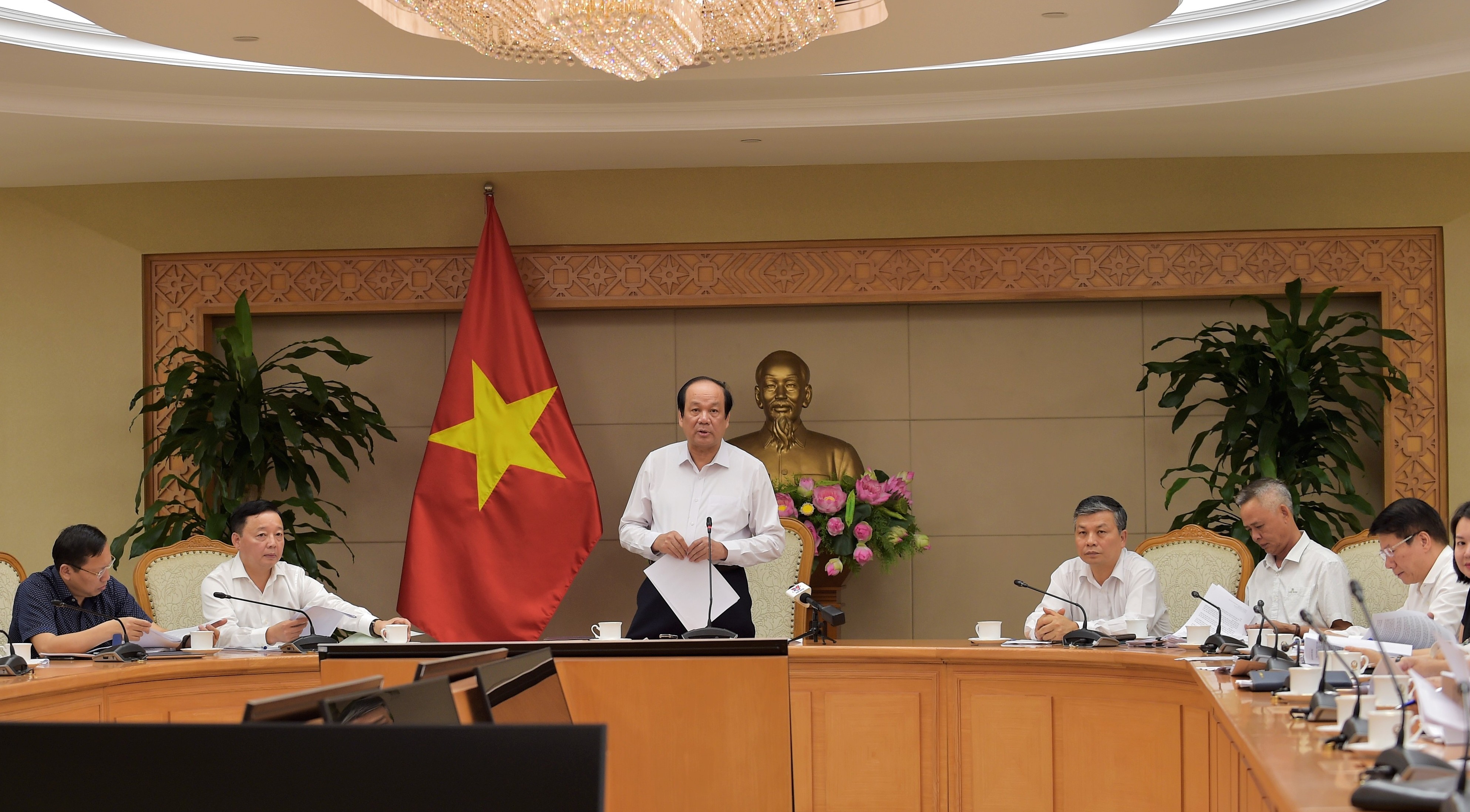 | Bộ trưởng, Chủ nhiệm VPCP Mai Tiến Dũng, Tổ trưởng Tổ công tác, phát biểu tại buổi làm việc. - Ảnh: VGP/Nhật Bắc |