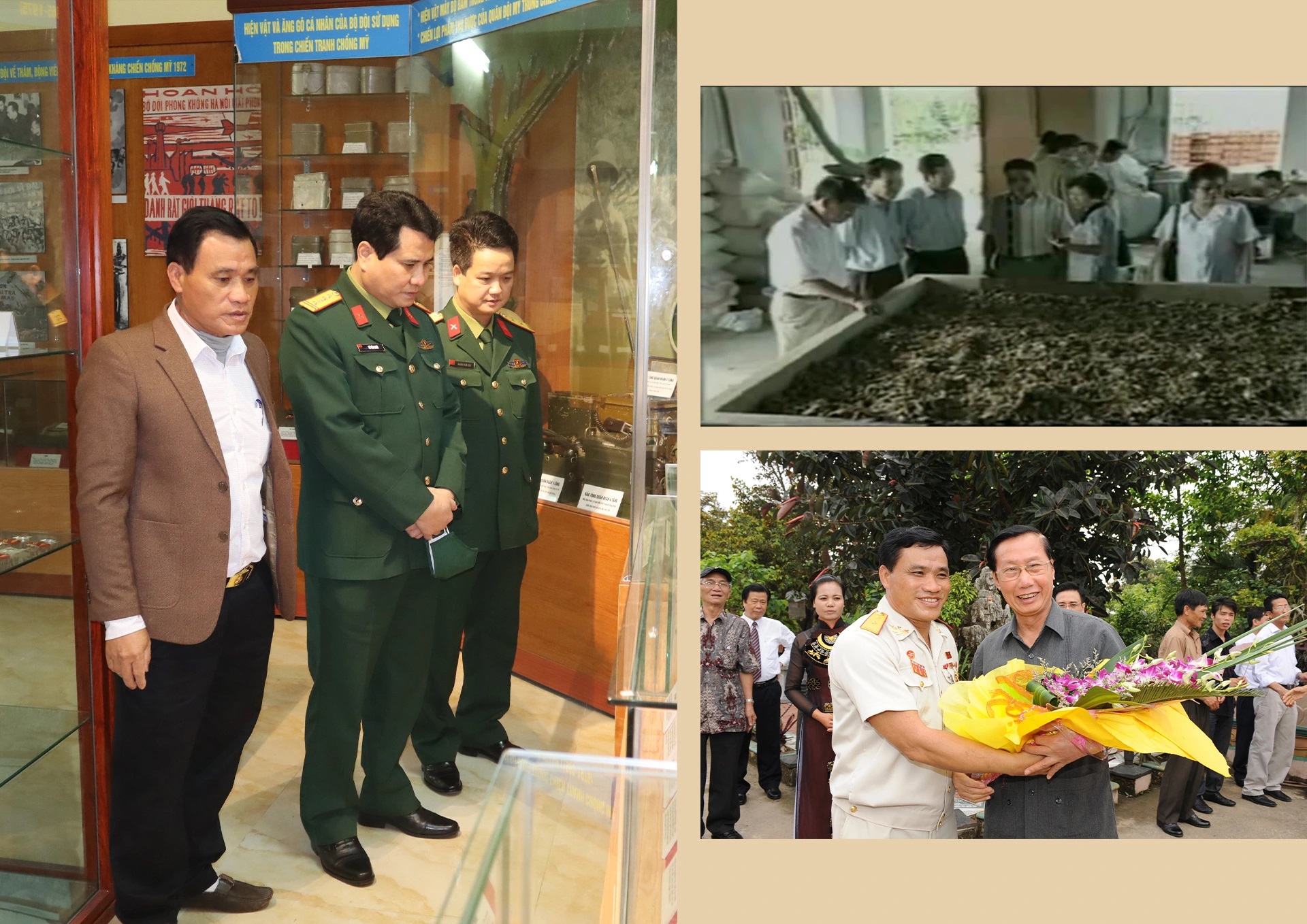 Thương binh, Anh hùng Lao động Trần Hồng Quảng giới thiệu các hiện vật trong Bảo tàng Quang Minh.