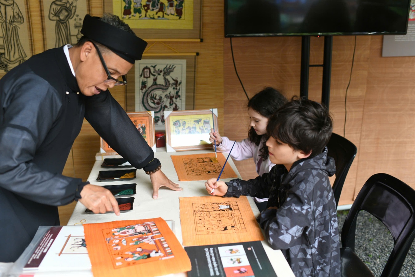 Để lan tỏa tranh Đông Hồ tại Bra-xin, ông Tâm đã sáng tạo kết hợp nhiều chất liệu, vẽ tranh lên mành tre và tạo khung gỗ tiện lợi để khách dễ dàng mang về làm kỷ niệm. Nhiều du khách thích thú khi có thể cuộn tranh gọn nhẹ làm quà hoặc trưng bày. Đặc biệt, các em nhỏ, sau khi trải nghiệm tạo tranh, đã thêm hiểu về dòng tranh dân gian độc đáo, mang đậm phong cách Việt Nam.