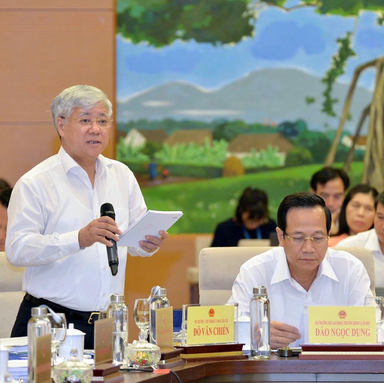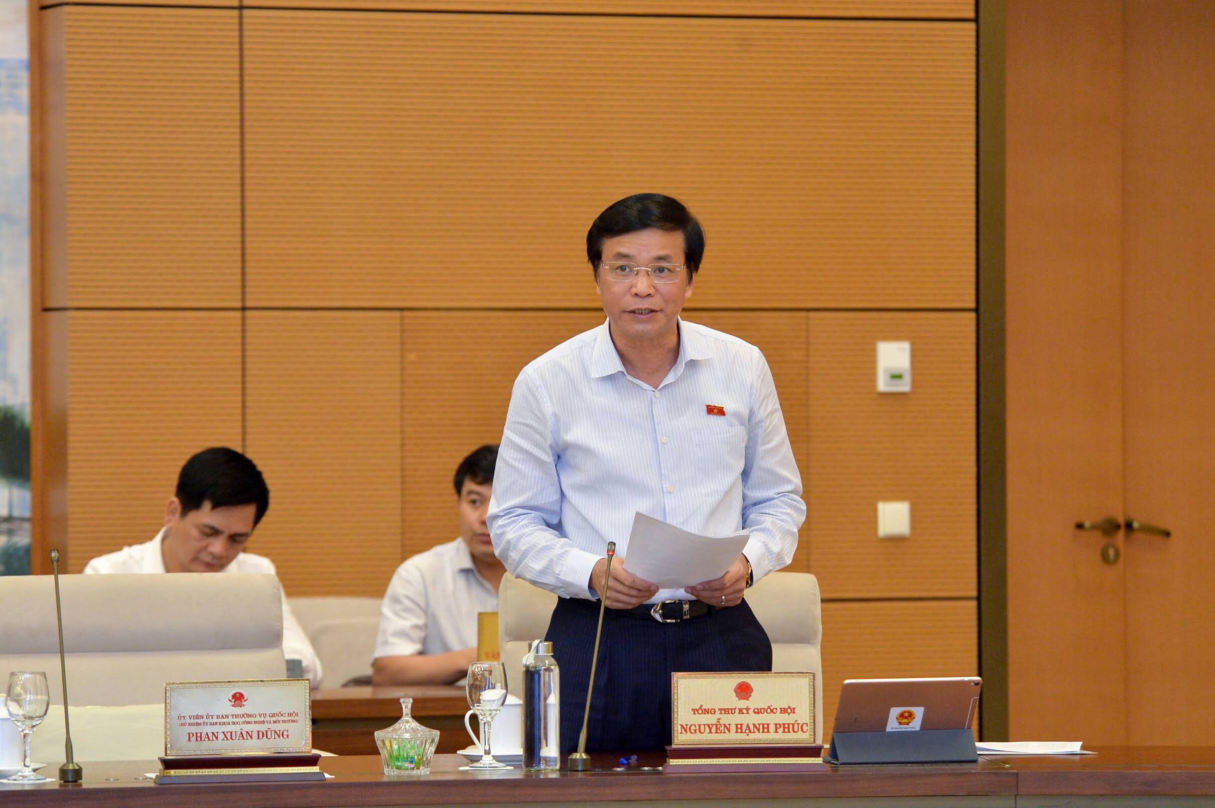 Ủy viên Ủy ban Thường vụ Quốc hội, Tổng Thư ký Quốc hội, Chủ nhiệm Văn phòng Quốc hội Nguyễn Hạnh Phúc trình bày Báo cáo tóm tắt tổng hợp thẩm tra của Hội đồng Dân tộc, các Ủy ban của Quốc hội.