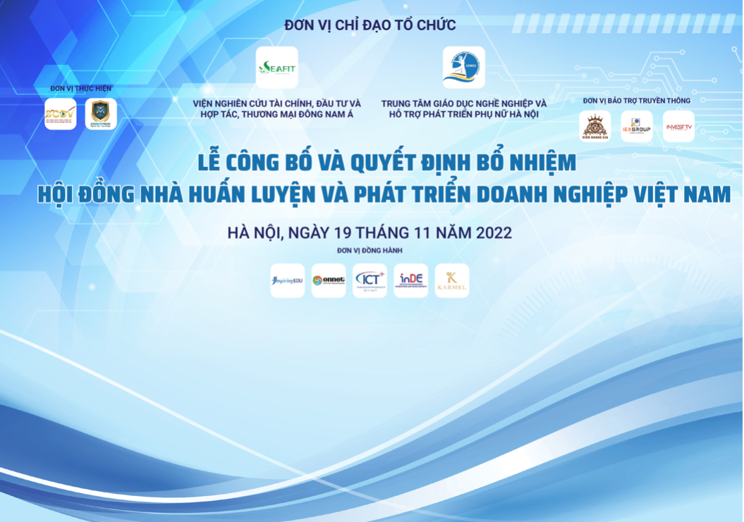 Với xu thế phát triển của cộng đồng doanh nghiệp trong bối cảnh hiện nay khi sự phát triển tự do của nhiều tổ chức đào tạo rất cần phải có một tổ chức quy tụ đào tạo cho doanh nghiệp một cách chuyên nghiệp, chính thống. Đứng trước yêu cầu đó, trong quy mô của chương trình, Viện Nghiên cứu Tài chính, Đầu tư và Hợp tác thương mại Đông Nam Á đã quyết định thành lập Hội đồng Nhà huấn luyện và Phát triển Doanh nghiệp Việt Nam, song song với đó là lễ công bố các quyết định thành lập và bổ nhiệm các vị trí lãnh đạo Hội đồng.