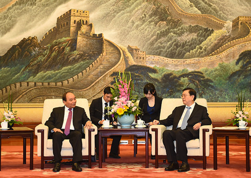 Thủ tướng Nguyễn Xuân Phúc hội kiến với Ủy viên trưởng Ủy ban Thường vụ Đại hội đại biểu nhân dân toàn quốc Trung Quốc Trương Đức Giang
