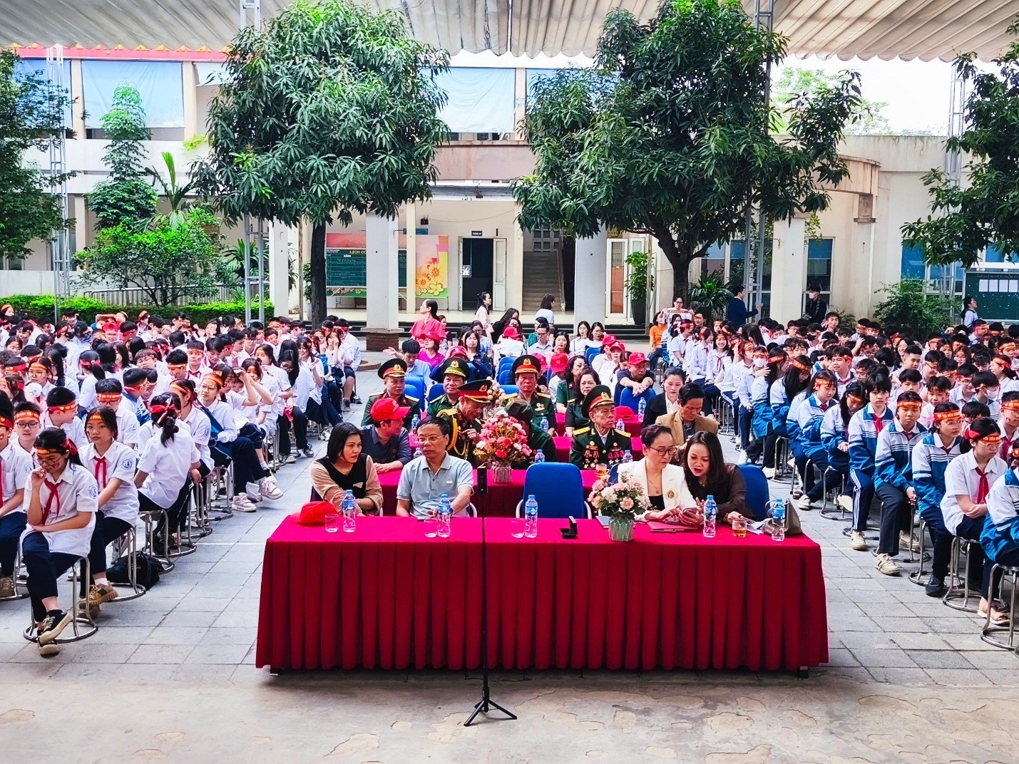 Các đại biểu và các em học sinh có mặt tại buổi lễ.