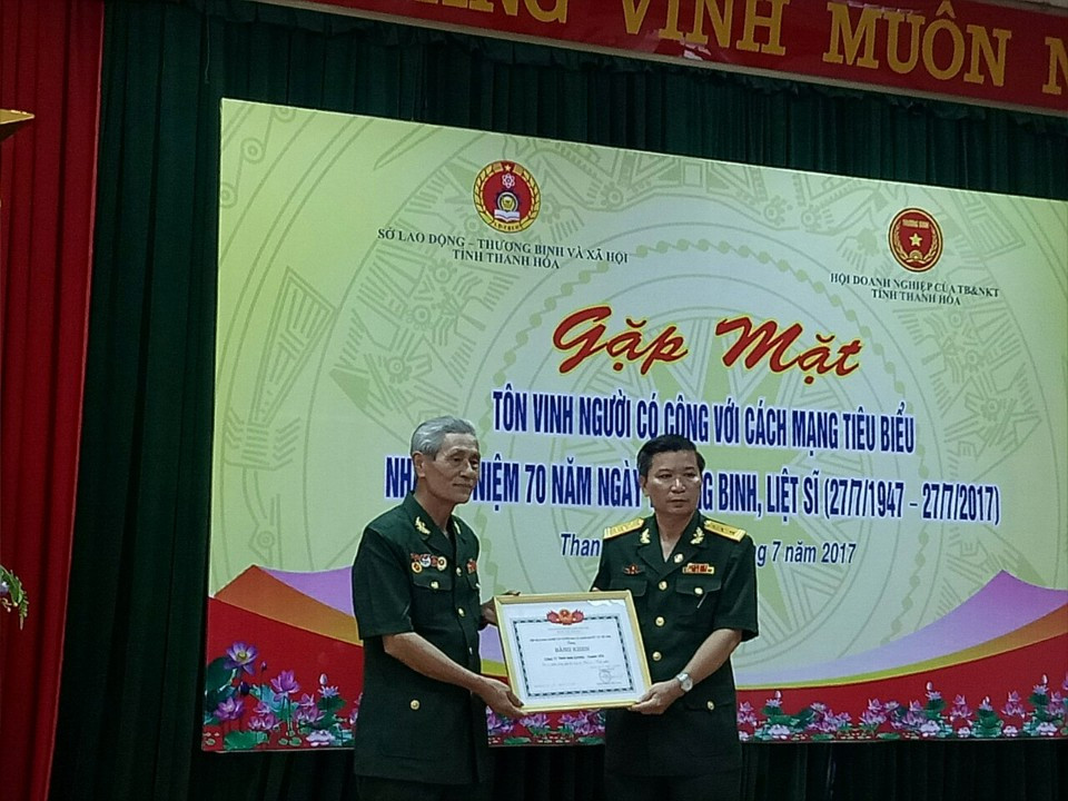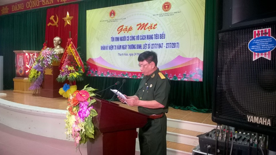 HOANHAP.VN - Sáng 24/7, tại Sở LĐ-TB&XH tỉnh Thanh Hóa, Hội Doanh nghiệp của Thương binh và NKT tỉnh Thanh Hóa long trọng tổ chức buổi lễ gặp mặt tôn vinh người có công tiêu biểu nhân kỷ niệm 70 năm ngày Thương binh - Liệt sĩ (27/7/1947 - 27/7/2017).