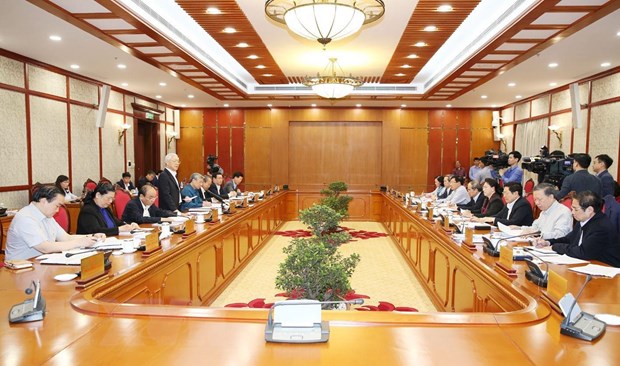 | Tổng Bí thư, Chủ tịch nước Nguyễn Phú Trọng phát biểu kết luận phiên họp. Ảnh TTXVN |