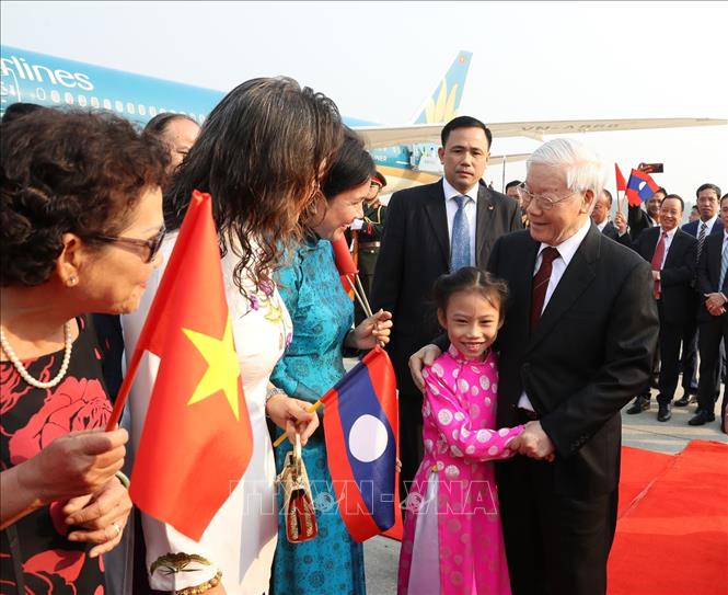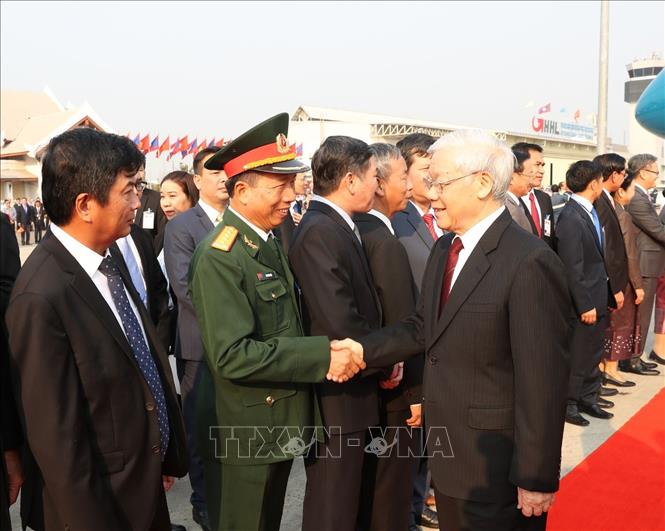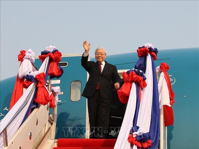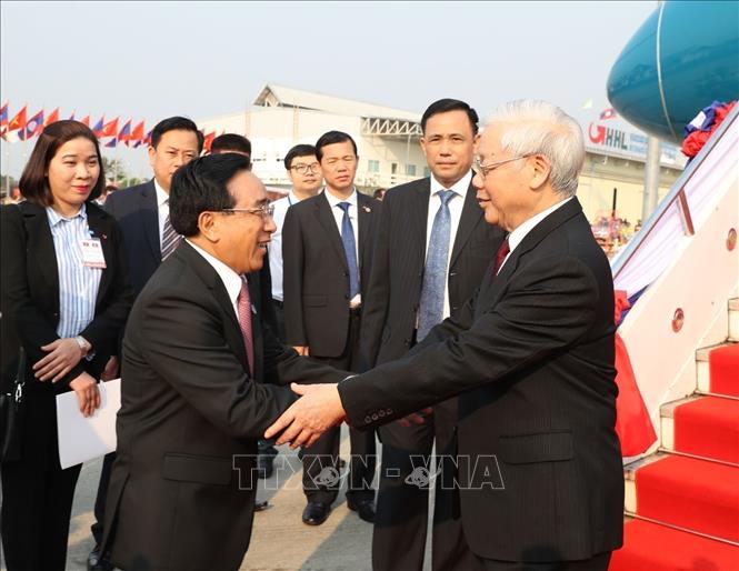 | Tổng Bí thư, Chủ tịch nước Nguyễn Phú Trọng bắt đầu chuyến thăm chính thức CHDCND Lào. Ảnh TTXVN |