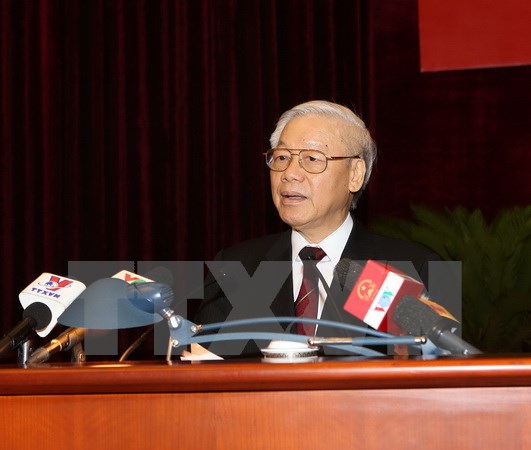 | Tổng Bí thư Nguyễn Phú Trọng phát biểu tại Lễ kỷ niệm. (Ảnh : Trí Dũng/TTXVN) |