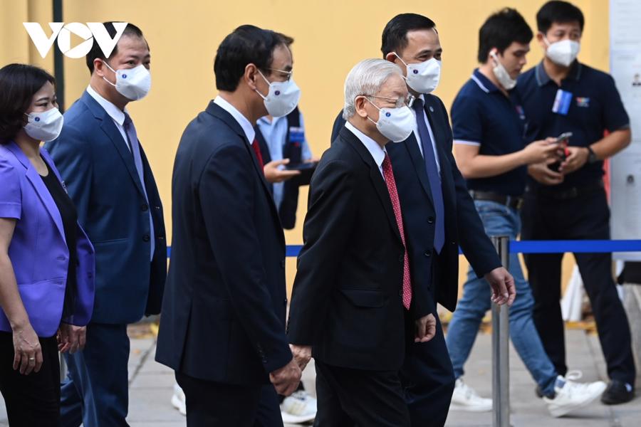 Khoảng 7h15 sáng 23/5, Tổng Bí thư Nguyễn Phú Trọng đã bỏ phiếu bầu cử tại khu vực bỏ phiếu số 4, phường Nguyễn Du, quận Hai Bà Trưng, Hà Nội - Ảnh: VOV
