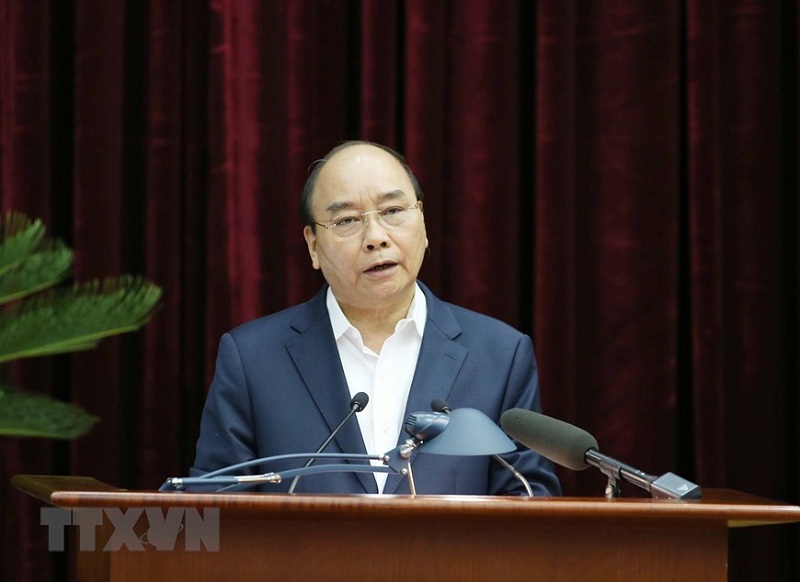 Thủ tướng Chính phủ Nguyễn Xuân Phúc trình bày báo cáo tại Hội nghị.