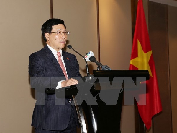 | Phó Thủ tướng, Bộ trưởng Bộ Ngoại giao Phạm Bình Minh phát biểu tại cuộc gặp. (Ảnh: Trí Dũng/TTXVN) |