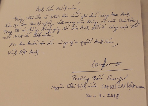 Nguyên Chủ tịch nước Trương Tấn Sang viết sổ tang