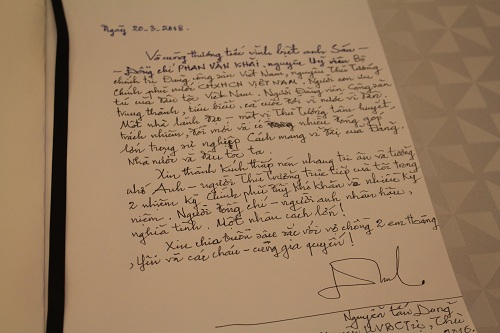 Nguyên Thủ tướng Nguyễn Tấn Dũng viết lời chia buồn trong sổ tang