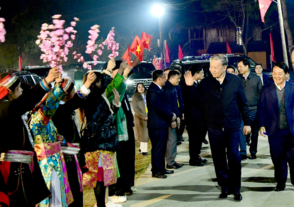 Cùng với hoạt động trên, tại Làng văn hóa du lịch cộng đồng thôn Nặm Đăm, Tổng Bí thư Tô Lâm đã trao 10 suất quà tặng đại diện gia đình chính sách huyện Quản Bạ. Bên cạnh đó, trong buổi tối cùng ngày, Tổng Bí thư cùng Đoàn công tác đã tham gia chương trình văn hóa của nhân dân các dân tộc tỉnh Hà Giang tại xã Đông Hà, huyện Quản Bạ. Tại đây, Tổng Bí thư Tô Lâm và Đoàn công tác tiếp tục trao 30 suất quà tặng gia đình chính sách của huyện Quản Bạ.