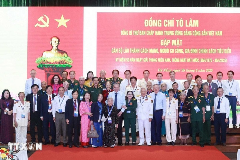 Phát biểu tại buổi gặp mặt, Tổng Bí thư Tô Lâm nêu rõ, sau 50 năm giải phóng miền nam, thống nhất đất nước và gần 40 năm đổi mới, dưới sự lãnh đạo tài tình, sáng suốt của Đảng, sự vào cuộc tích cực, có hiệu quả của cả hệ thống chính trị và toàn dân, trong đó có đóng góp quan trọng của các đồng chí tham dự buổi gặp mặt hôm nay, sự nghiệp xây dựng, bảo vệ Tổ quốc Việt Nam xã hội chủ nghĩa, phát triển đất nước đã đạt được những thành tựu vĩ đại.