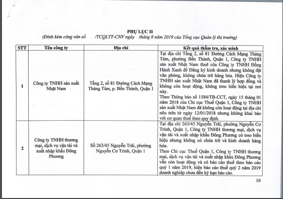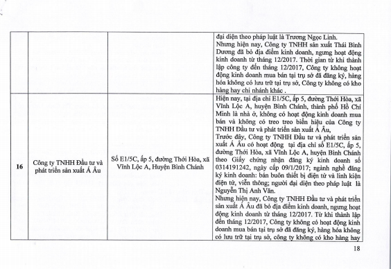 Ngoài ra Tổng cục Quản lý thị trường còn có kết quả xác minh của 23 doanh nghiệp khác. Kết quả như sau: