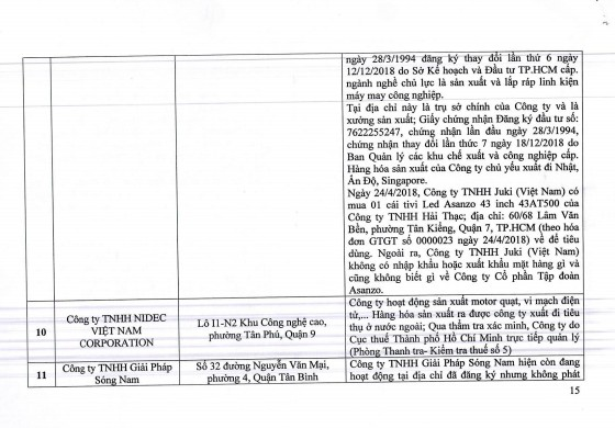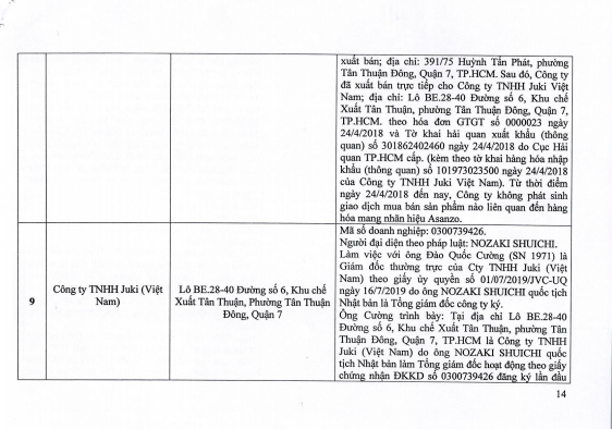 Tổng cục Quản lý thị trường đã xác minh 15 doanh nghiệp có giao dịch liên quan đến Asanzo.