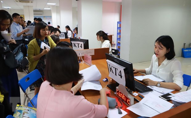 | Nộp hồ sơ quyết toán thuế tại Cục thuế Hà Nội. (Ảnh: Hoàng Hùng/TTXVN) |