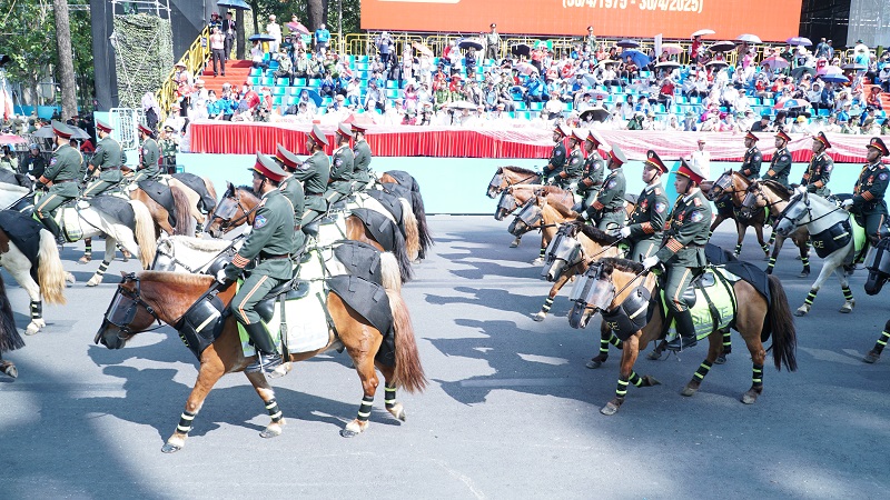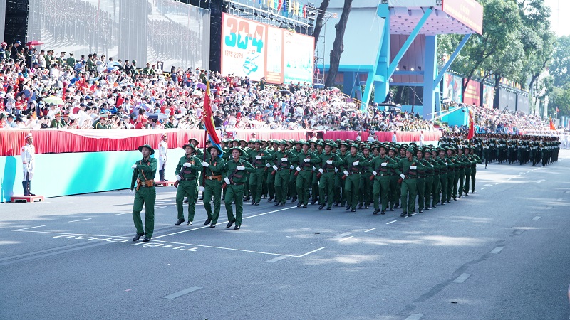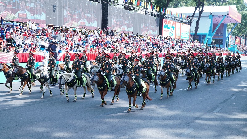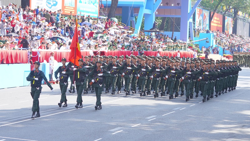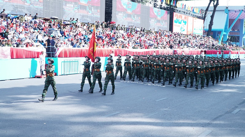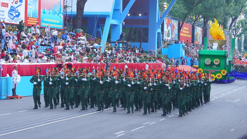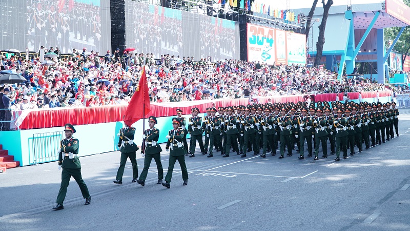 Lúc 9 giờ, phần diễu binh, diễu hành qua lễ đài kết thúc. Các khối tiếp tục di chuyển theo 4 hướng về công viên Bến Bạch Đằng, công viên Tao Đàn, công viên Lê Văn Tám và sân vận động Hoa Lư.