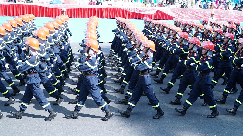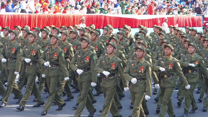Tham gia tổng duyệt có 56 khối. Trong đó, khối xe nghi trượng gồm 4 khối, có 36 khối của quân đội, dân quân tự vệ và công an. Ngoài ra, còn có khối quân đội của Lào, Campuchia và Trung Quốc cùng tham gia. Phần diễu hành có sự tham gia của 12 khối quần chúng.