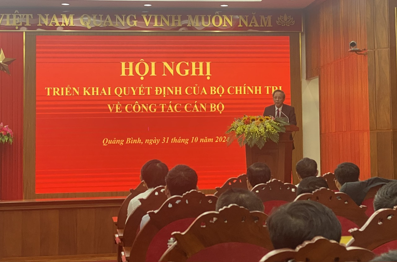 Sáng ngày 31/10, tại thành phố Đồng Hới, tỉnh Quảng Bình, tỉnh ủy Quảng Bình tổ chức Hội nghị công bố quyết định của Bộ Chính trị về công tác cán bộ.