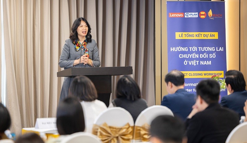 Phát biểu tại lễ tổng kết, bà Lê Quỳnh Lan – Giám đốc Quốc gia tổ chức Plan International Việt Nam cho biết, mặc dù chỉ triển khai trong một năm, dự án "Hướng tới tương lai chuyển đổi số ở Việt Nam" đã thành công vượt chỉ tiêu nhờ sự quyết tâm của Viện REACH và nỗ lực của các bạn thanh niên, đặc biệt là các bạn nữ. Dự án không chỉ cung cấp cơ hội học nghề và kỹ năng mềm cho thanh niên, mà còn giúp thay đổi nhận thức xã hội về khả năng của nữ giới trong lĩnh vực công nghệ, vốn thường được coi là "lĩnh vực của nam giới". Thành công của các bạn, đặc biệt là các bạn nữ, sẽ là nguồn cảm hứng mạnh mẽ, góp phần xóa bỏ định kiến và thúc đẩy bình đẳng giới.