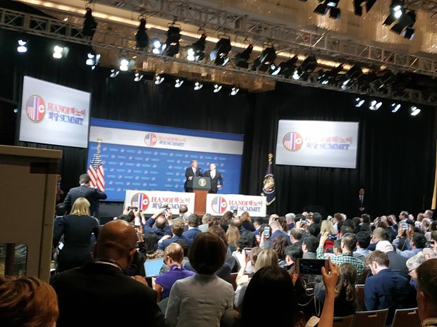Cuộc họp báo của Tổng thống Mỹ Donald Trump tại khách sạn Marriott ngày 28/2 tại Hà Nội, sau khi Nhà Trắng thông báo ông và Chủ tịch Triều Tiên Kim Jong-un không đạt được thỏa thuận trong cuộc họp ở khách sạn Sofitel Legend Marriott đã bắt đầu vào lúc 14 giờ.