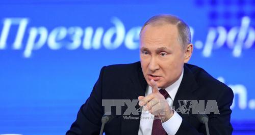 Tổng thống Putin phát biểu tại cuộc họp báo cuối năm. Ảnh: AFP/TTXVN