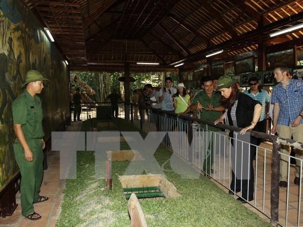 Khách nước ngoài tham quan Bảo tàng Chứng tích chiến tranh. (Nguồn: TTXVN)