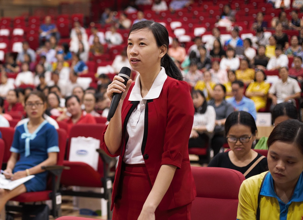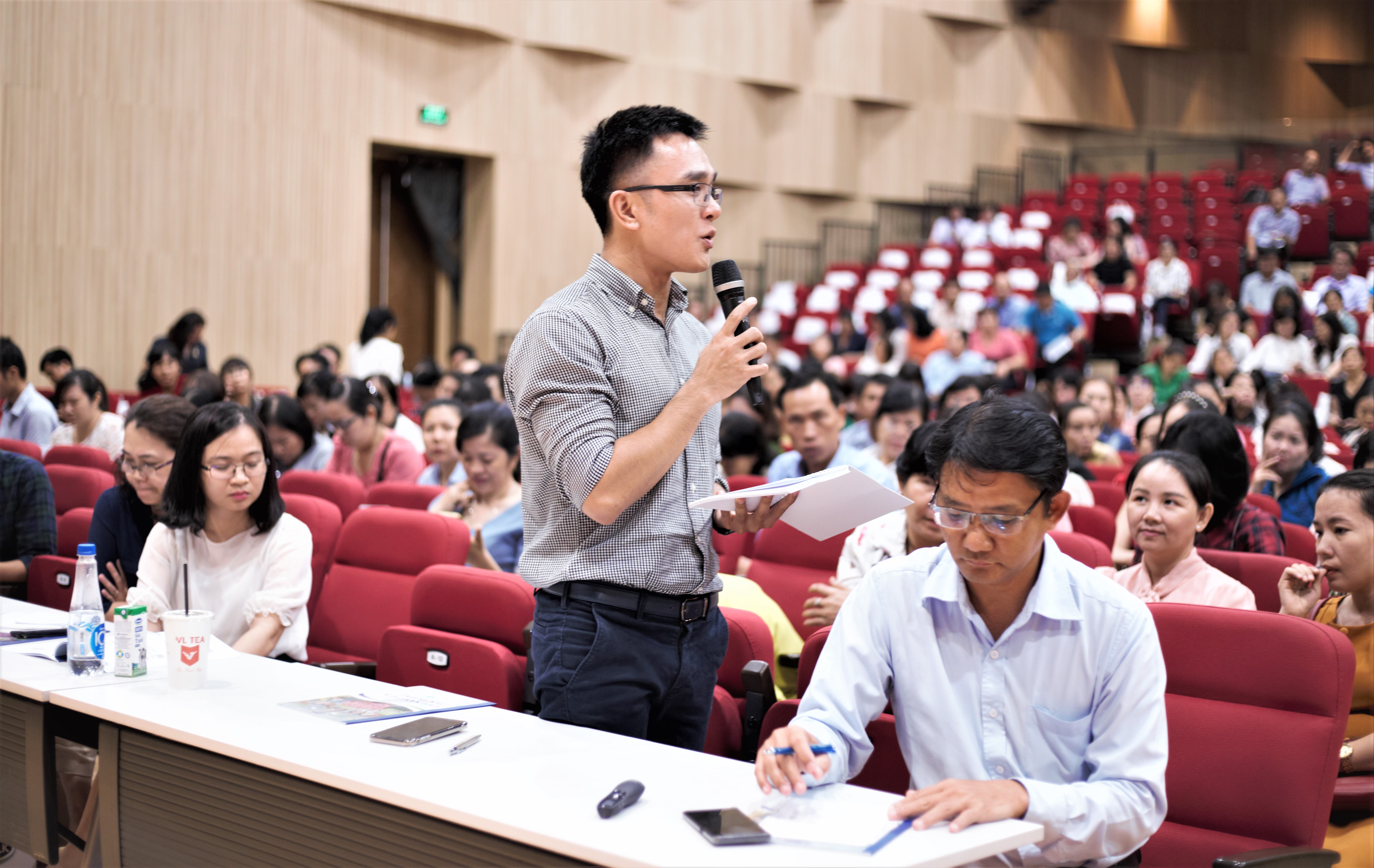 | Ông Nguyễn Quang Thái – Giám đốc Phát triển Hoạt động Cộng đồng Vinamilk chia sẻ và giải đáp những băn khoăn của đại biểu về chương trình sữa học đường tại tập huấn sữa học đường. |