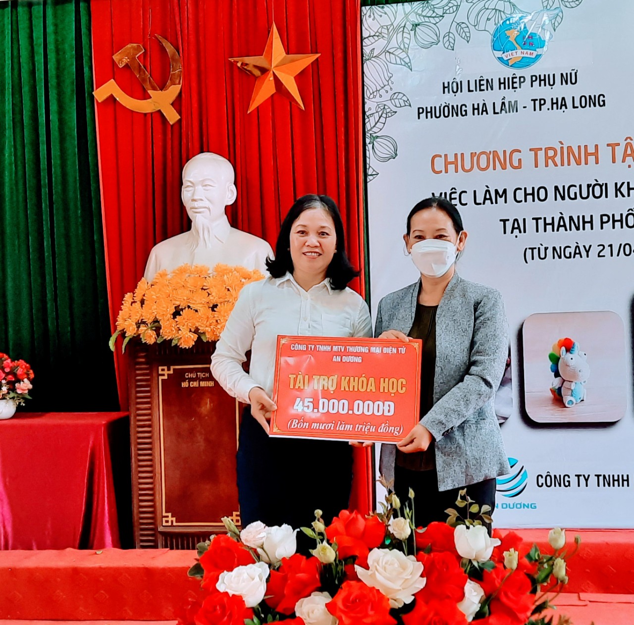 Cũng tại Lễ khai giảng lớp dạy nghề cho người khuyết tật phường Hà Lầm thành phố Hạ Long, công cty TNHH MTV thương mại điện tử An Dương, nhà tài trợ chính và cũng là đối tác chiến lược của Công ty cổ phần hợp tác thương mại và dạy nghề Bảo Chung về phát triển mô hình dạy nghề móc len tại quảng ninh đã trao số tiền 45 triệu đồng, tài trợ cho các học viên trong toàn khóa học.