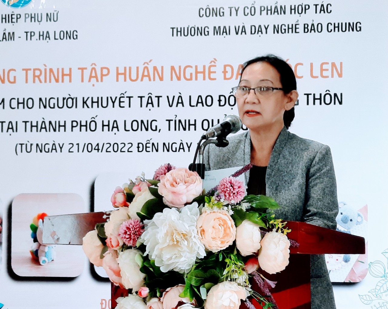 Tại Lễ khai giảng lớp dạy nghề cho người khuyết tật phường Hà Lầm (TP Hạ Long), bà Võ Thị Ánh Hồng- Giám đốc Công ty CP Hợp tác thương mại và Dạy nghề Bảo Chung, đơn vị tổ chức lớp học Đan móc thủ công cho người khuyết tật trên địa bàn phường Hà Lầm cho biết: Cùng với phương châm “Tạo việc làm ổn định, phát triển bền vững, giúp người khuyết tật, người có hoàn cảnh khó khăn có nghề nghiệp tự nuôi sống bản thân, qua đó mang lại giá trị cho đời sống và sự phát triển nhân cách của họ, tự khẳng định được vai trò trong cuộc sống gia đình và cộng đồng xã hội gần nhất, xóa đi mặc cảm tự ti, tự tin hơn trong giao tiếp vào hòa nhập cộng đồng. Ngoài ra, Công ty Bảo Chung cũng hướng tới mục tiêu xóa bỏ định kiến về tiêu thụ sản phẩm của người khuyết tật từ trước đến nay phần lớn chỉ là mang tính ủng hộ từ thiện”.