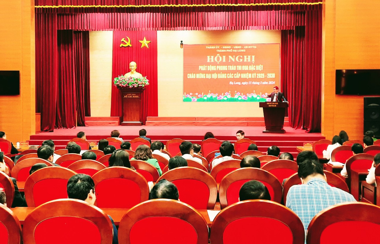 Nhằm biểu thị quyết tâm hưởng ứng, đẩy mạnh phong trào thi đua đặc biệt chào mừng Đại hội Đảng bộ các cấp nhiệm kỳ 2025 - 2030, đại diện phường, xã và Ban ban ngành, đoàn thể của thành phố phát biểu hưởng ứng thi đua, đồng thời ký cam kết quyết tâm thực hiện thắng lợi các mục tiêu, nhiệm vụ nhiệm kỳ 2020-2025 đã đề ra, hiện thực hóa mục tiêu xây dựng, phát triển thành phố Hạ Long trở thành Trung tâm dịch vụ, du lịch đẳng cấp quốc gia, mang tầm quốc tế, xây dựng thành phố “Kiểu mẫu, hiện đại, giàu đẹp, văn minh, nghĩa tình”.