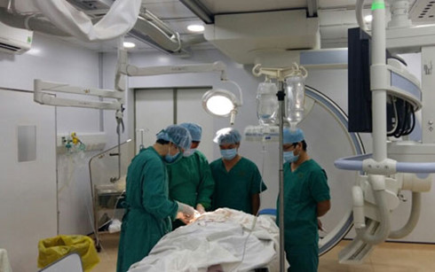 Ngày 3/3, ê-kíp các bác sĩ của khoa Hồi sức Tim Mạch cùng với sự hổ trợ của chuyên gia đã tiến hành cấy máy tạo nhịp tim vĩnh viễn cho bệnh nhân tại phòng thông tim, dưới sự hỗ trợ của máy DSA. Trong vòng 60 phút, cuộc phẫu thuật diễn ra thành công. Hiện tại bệnh nhân đã ổn định sức khỏe và sẽ được xuất viện trong vài ngày tới.