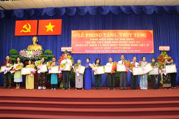| Thành ủy, HĐND, UBND, Ủy ban MTTQ Việt Nam TP.HCM tổ chức Lễ phong tặng, truy tặng danh hiệu vinh dự Nhà nước “Bà Mẹ Việt Nam Anh hùng”. |