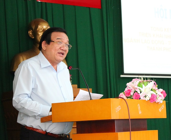 | Đồng chí Lê Minh Tấn, Giám đốc Sở LĐ-TB&XH TP.HCM phát biểu tại Hội nghị tổng kết cuối năm 2018 và triển khai nhiệm vụ năm 2019. |