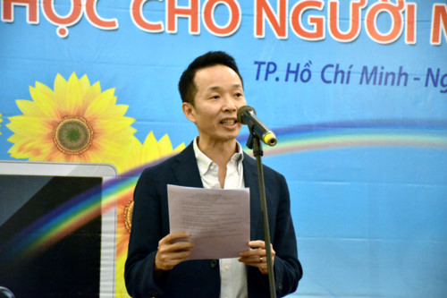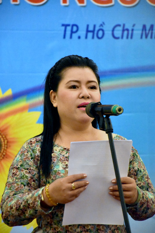 Cô Nguyễn Hướng Dương - Giám Đốc Thư Viện Sách Nói dành cho Người Mù phát biểu tại buổi lễ