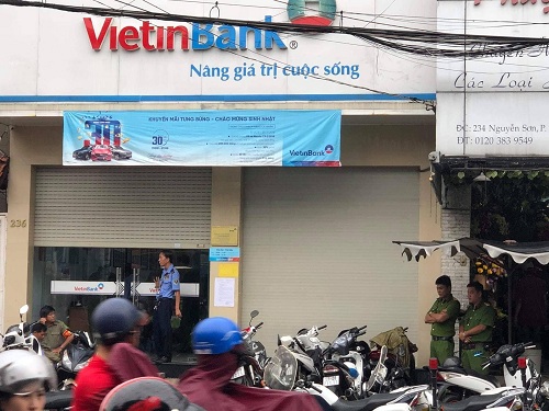 Vào 14h30 cùng ngày, một thanh niên đi vào Ngân hàng CPTM Công Thương Việt Nam (VietinBank) nằm trên đường Nguyễn Sơn (quận Tân Phú, TP.HCM) để xin tiền.
