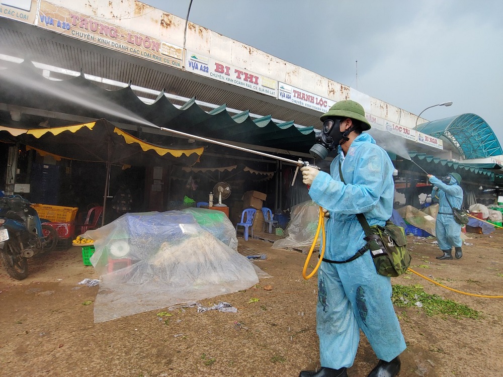 Lực lương chức năng khoanh vùng, phun khử khuẩn nhiều nơi ghi nhận các cơ nhiễm Covid-19 - Ảnh: Lê Tân.
