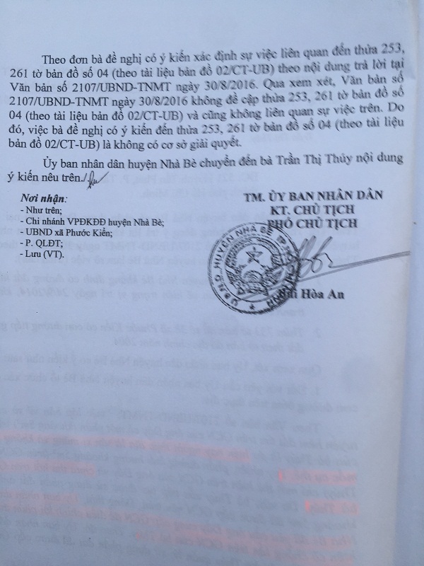 | Văn bản của UBND huyện Nhà Bè trả lời đơn Khiếu nại. |