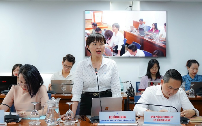 Bà Lê Hồng Nga - Phó giám đốc Trung tâm kiểm soát bệnh tật Thành phố (HCDC) cung cấp thông tin tại họp báo.