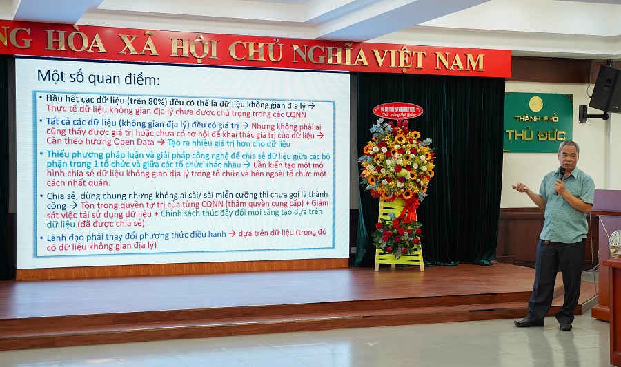 Tại Hội thảo, các nhà khoa học, chuyên gia đầu ngành đã góp ý trực tiếp về một số vấn đề còn hạn chế, bất cập trong việc xây dựng và đồng bộ cơ sở dữ liệu đô thị của TP Thủ Đức: dữ liệu của các ngành, lĩnh vực được xây dựng, lưu trữ rời rạc, phân tán ở các cơ quan quản lý, dữ liệu ở các định dạng khác nhau, không thống nhất về mặt cấu trúc, bị trùng lặp về thông tin dữ liệu, các cơ sở dữ liệu không đầy đủ các thông tin liên quan, chưa đảm bảo chất lượng và đồng bộ để sử dụng hiệu quả.
