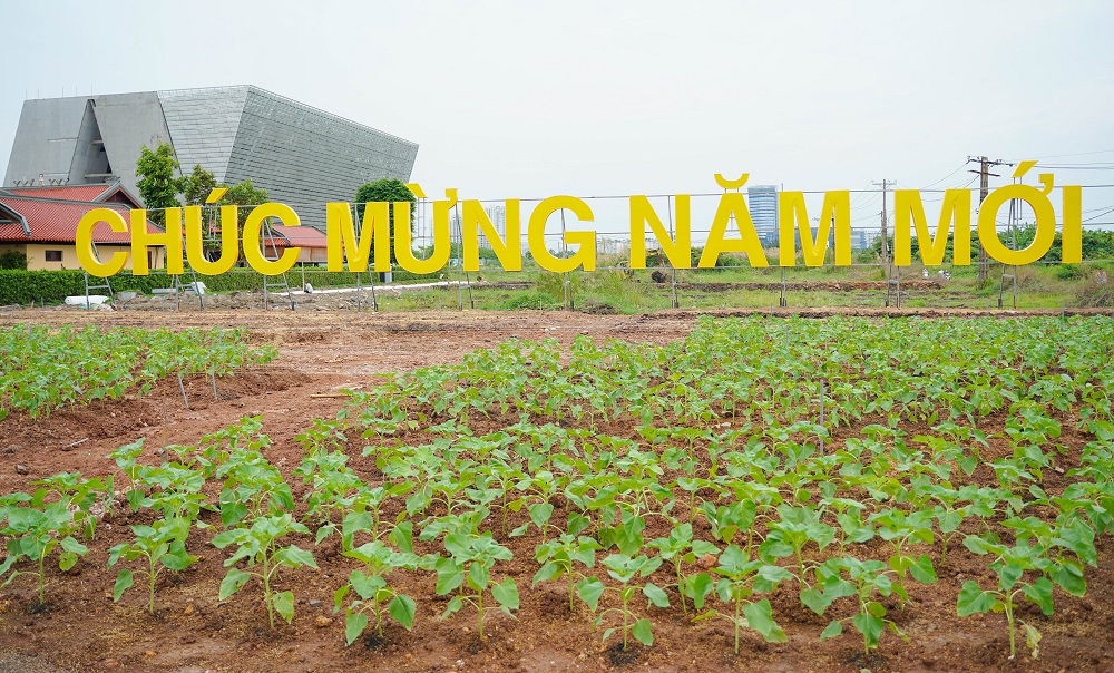 Nhiều khoản đất trống sau khi cải tạo, được công nhân trồng hoa Hướng Dương, phủ màu áo mới chuẩn bị đón tết Nguyên Đán năm 2024.