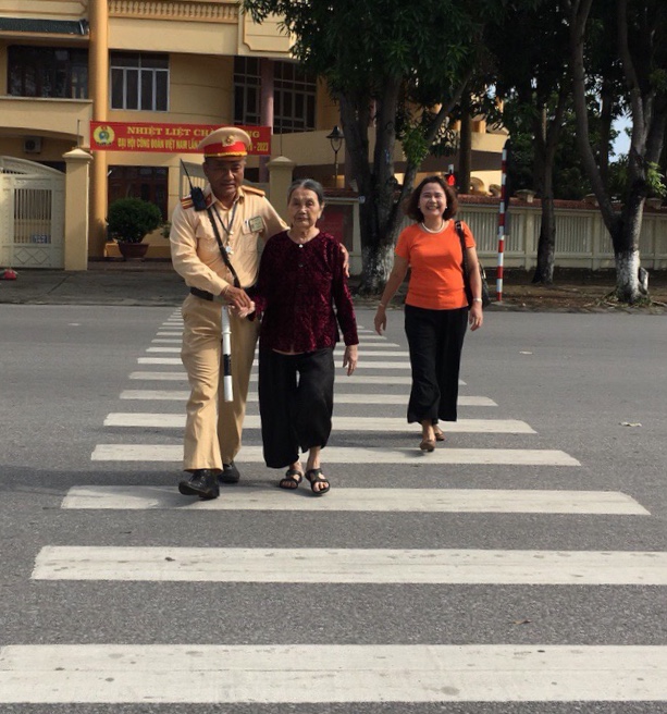 | Cụ bà được CSGT dẫn qua đường trước những ánh mắt thiện cảm của người tham gia giao thông |