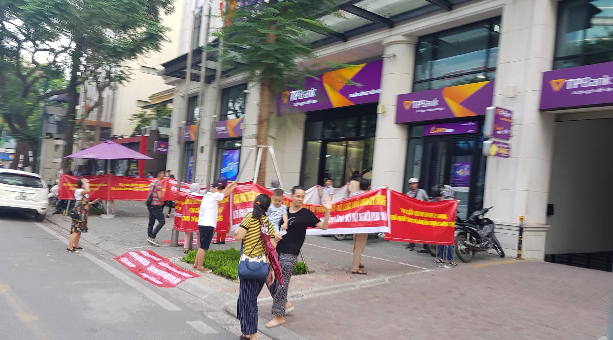 Người mua nhà căng băng rôn tại trụ sở TPBank |