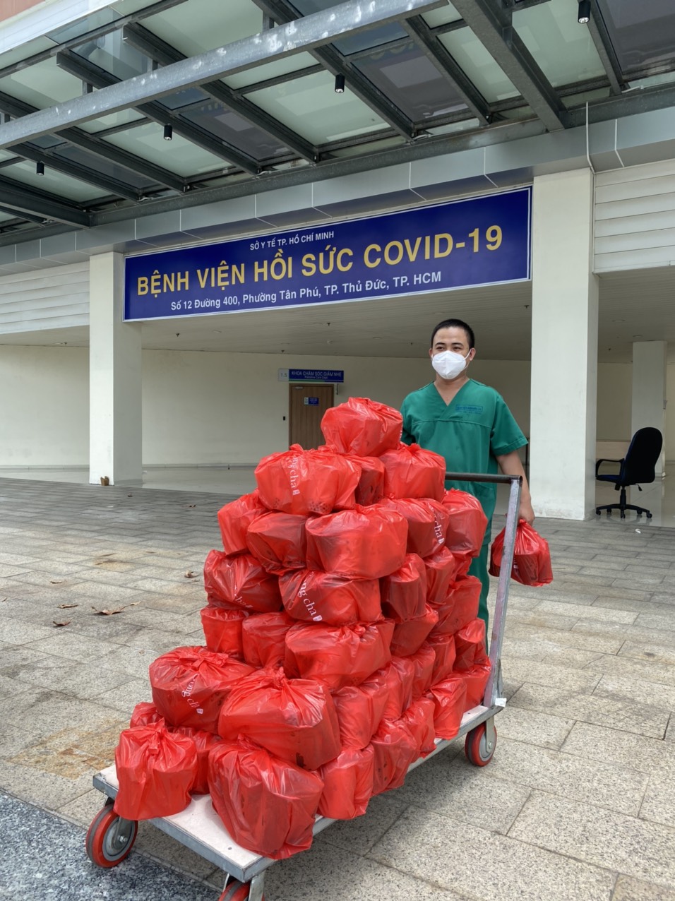 Gửi tặng trà sữa cho lực lượng bác sĩ tại Bệnh viện hồi sức covid-19 (ẢNH: NVCC)