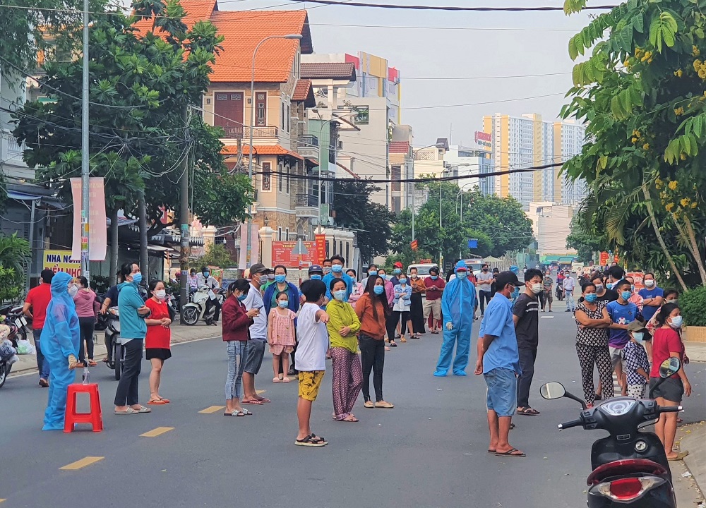 Nhiều người dân tại một số khu vực trên địa bàn phường An Lạc, quận Bình Tân được đội ngũ y tế hỗ trợ lấy mẫu xét nghiệm Covid-19 vào chiều ngày 19/6 - Ảnh: Thuận Văn.