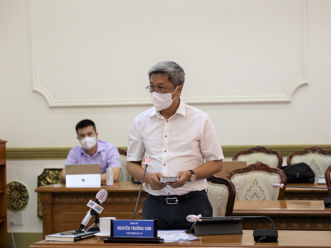 Thứ trưởng Bộ Y tế Nguyễn Trường Sơn phát biểu tại cuộc họp - Ảnh: HMC.