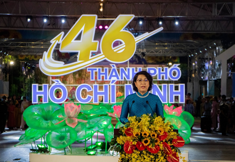 “Trong suốt 46 năm qua, Thành phố này được tiếp nối, truyền lưu và vinh dự mang tên của Chủ tịch Hồ Chí Minh vĩ đại. Từ ngọn nguồn yêu nước, ý chí, phẩm chất, trí tuệ cách mạng tuyệt vời của người, các cán bộ Nhân dân Thành phố đã không ngừng nỗ lực lao động bằng dự năng động sáng tạo, tinh thần đoàn kết không ngại khó khăn, nhân ái và nghĩa tình. Bằng trách nhiệm của người Sài Gòn – Gia Định, TP Hồ Chí Minh luôn sẵn sàng cùng cả nước, vì cả nước, tất cả đã hợp thành nội lực đưa Thành phố trở thành một trung tâm lớn về kinh tế, văn hóa, giáo dục đào tạo, khoa học công nghệ, đầu mối giao lưu và quan hệ quốc tế" - Đ/c Tô Thị Bích Châu phát biểu.