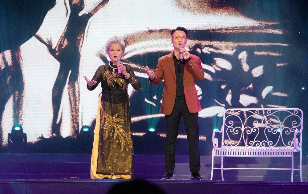 NSND Bạch Tuyết song ca cùng ca sĩ trẻ Hoàng Dũng trong tiết mục "Về nghe mẹ ru".