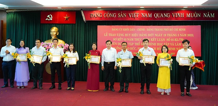 Nhân kỷ niệm 133 năm ngày sinh Chủ tịch Hồ Chí Minh (19/5/1890 – 19/5/2023). Ngày 18/5, Đảng ủy khối Dân – Chính – Đảng TP Hồ Chí Minh tổ chức Lễ trao tặng Huy hiệu Đảng đợt ngày 19/5/2023; Sơ kết 2 năm thực hiện Kết luận số 01-KL/TW của Bộ Chính trị; biểu dương tập thể điển hình học tập và làm theo tư tưởng, đạo đức, phong cách Hồ Chí Minh năm 2023; trao giải cuộc thi viết về công tác phòng, chống dịch COVID-19 trên địa bàn Thành phố.